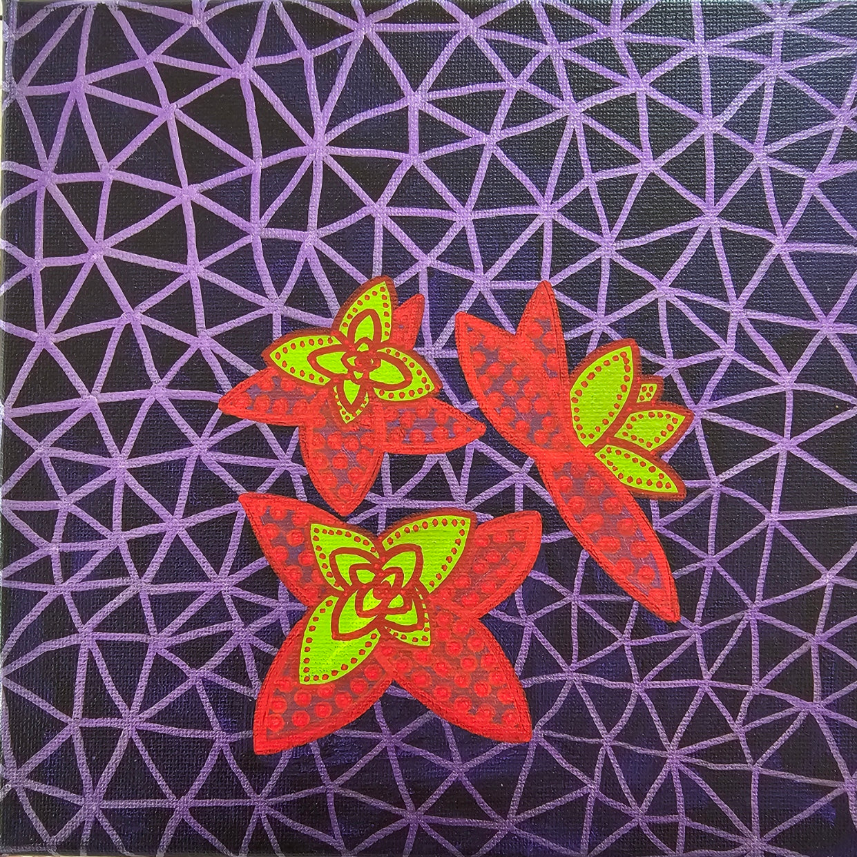 Hebe is an original 15cm x 15cm painting that makes for a beautiful and unique wall decoration. Its intricate details and vibrant colors will add a touch of elegance to any space. Part of the Flora series, Hebe reimagines the diversity of New Zealand Flora, focusing on its symbolic and practical significance. This artwork draws in the vibrant colours and distinctive shapes of the Hebe plant, offering a tribute to its beauty and enduring importance in te ao Māori.