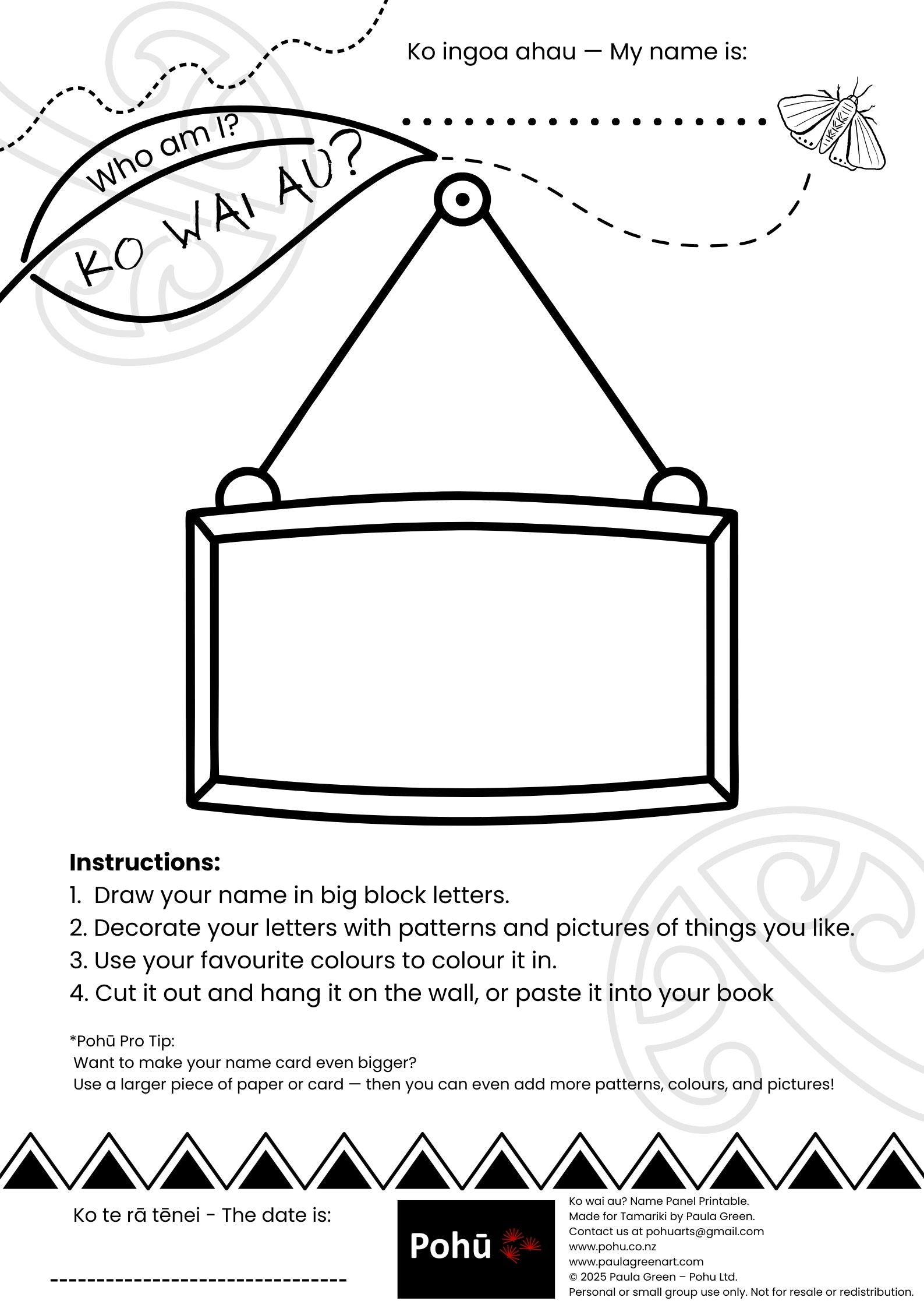 Ko Wai Au name panel Pohū printable FREE