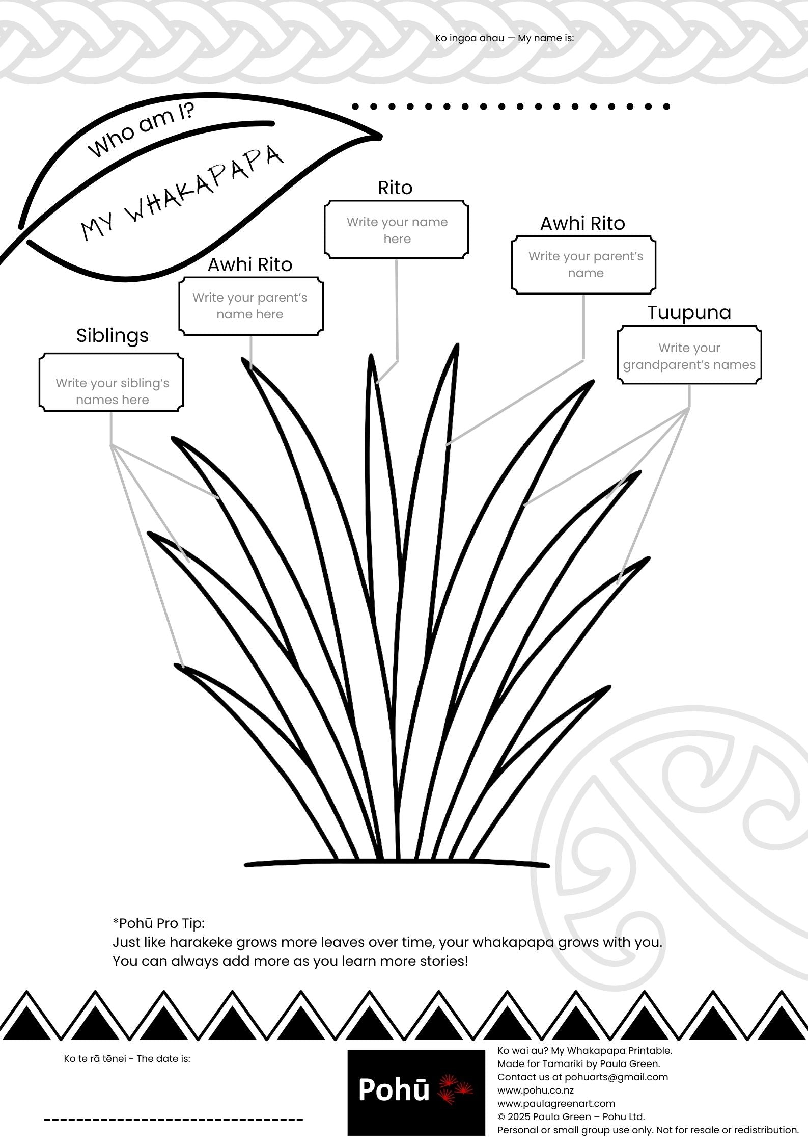 The My Whakapapa printable explores family ties! Perfect for activity tables and events. This item is only available as a downloadable product.
