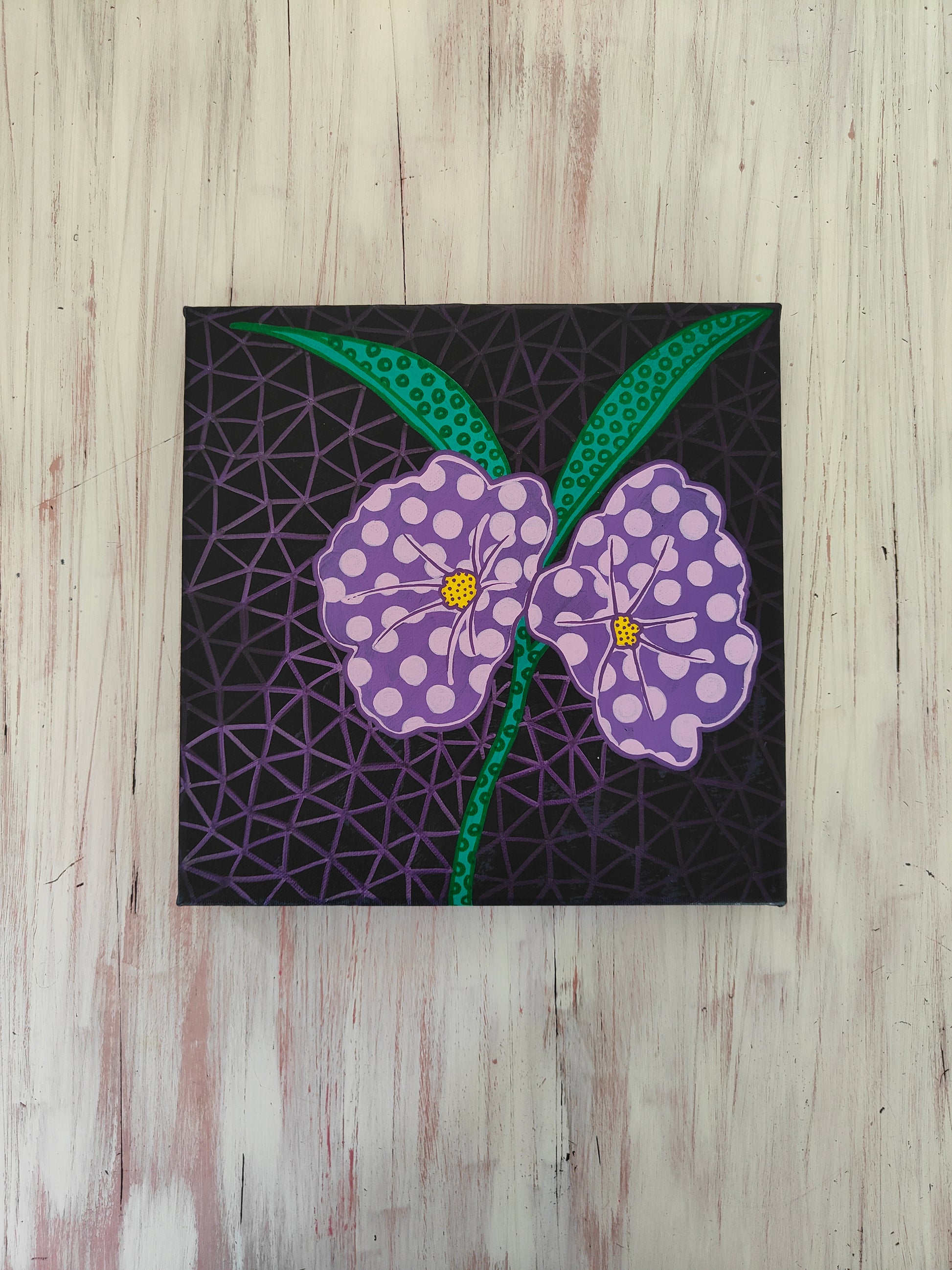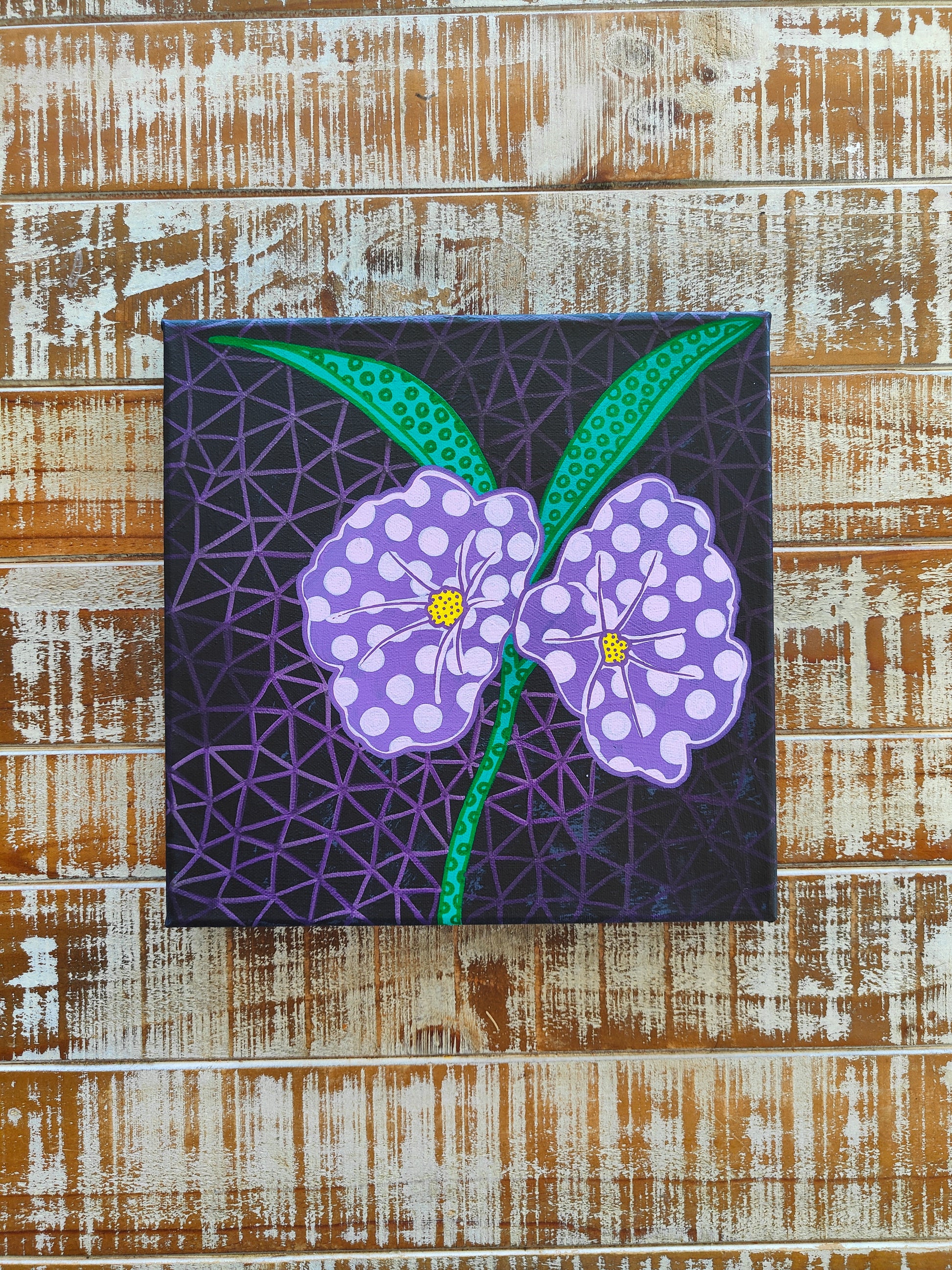Poroporo is an original 30cm x 30cm painting that makes for a beautiful and unique wall decoration. Its intricate details and vibrant colors will add a touch of elegance to any space. Part of the Flora series, Poroporo reimagines the diversity of New Zealand Flora, focusing on its symbolic and practical significance. This artwork draws in the vibrant colours and distinctive shapes of the Poroporo plant, offering a tribute to its beauty and enduring importance in te ao Maori.