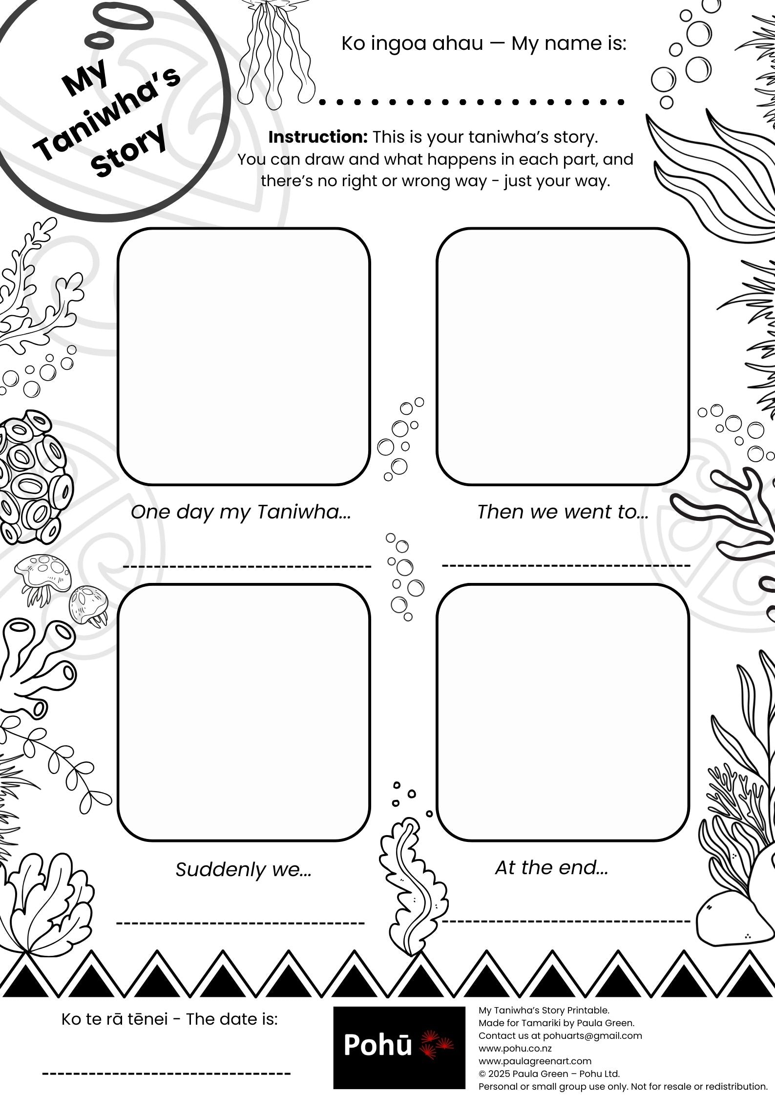 Taniwha Storyboard Pohū printable